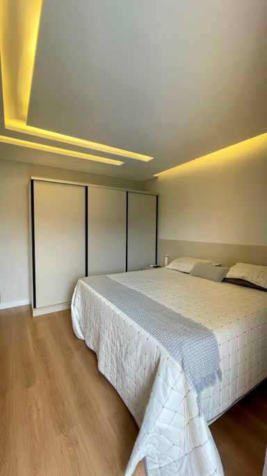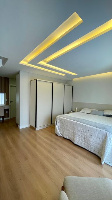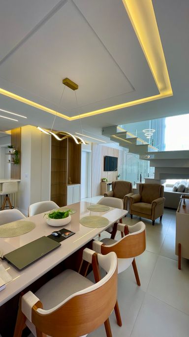 Ambientes integrados, ar-condicionado, acabamento em gesso, mármore, porcelanato, piso laminado e madeira, garantindo um alto padrão de acabamento.